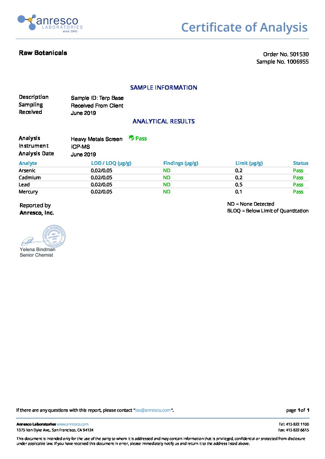 We proudly offer the highest quality uncut 100% pure botanical terpenes. All of our terpenes are naturally derived, meaning they come from natural sources such as fruits or flowers.